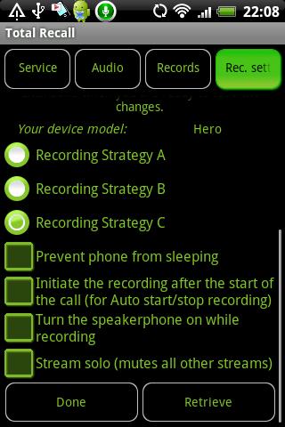 Total Recall is also the only cross platform Call Recorder App that can record calls on not only Android, but also Nokia Symbian, Symbian^3, Meego & WP7 smart phones. This means that your favorite call recorder will be available, even when you change devices years from now. Literally NO other recorder app can claim this!