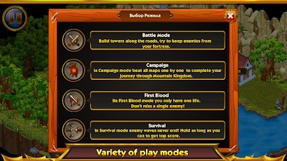 Defend the scenic valleys and mountain outposts! Build arrow and magic towers, catapults and cannons. Win the battles on all 16 maps, in four different game modes: the standard game, the campain against the Mountain King, the endless game for survival and the battle to the first blood.